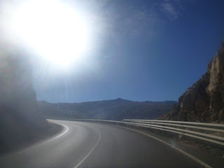 Aber dann nach einer weiteren Serpentine habe ich Rückenwind, rechts den dunklen Fels, es sieht aus als ob die Straße geradewegs in den Himmel führt, und links blickt man unendlich weit über die andalusische Landschaft. Das verfehlt seine Wirkung nicht, ich scheine meine Schwächephase zu überwinden. Sooo weit vom Ziel bin ich nicht mehr entfernt.